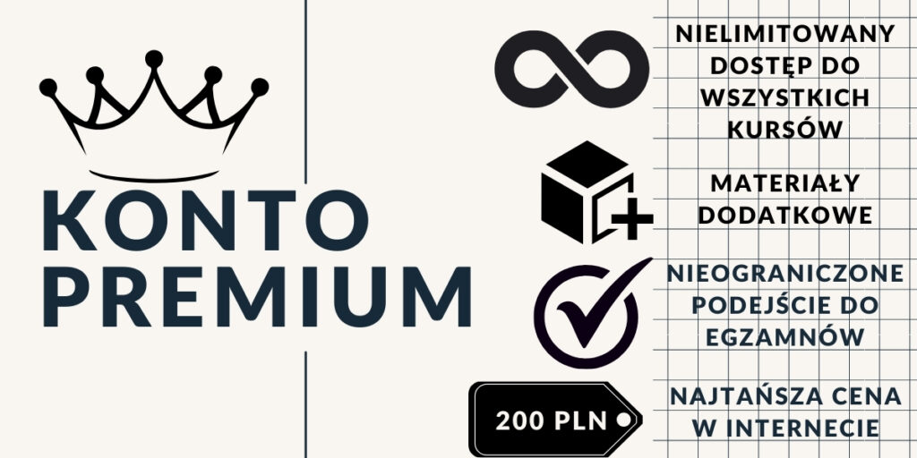 Ekskluzywne materiały dodatkowe – oprócz standardowych kursów otrzymujesz dostęp do specjalnych e-booków, rozszerzonych testów oraz dodatkowych zasobów, które pogłębią Twoją wiedzę.